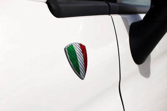 Weißes Carbonfaser-Kotflügelschild-Emblem mit italienischer Flagge - Carbonfaser